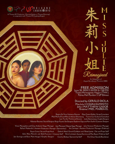 Under the banner of UP Dulaang Laboratoryo, this play was staged for Theatre 143 (Directed Studies in Theatre Directing) in collaboration with Theatre 153 (Lighting Design).